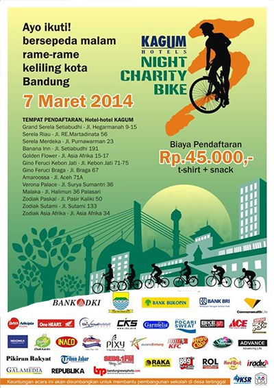 “Targetkan 2000 Peserta, Seluruh Keuntungan Dipergunakan Merenovasi Sekolah Dasar” Bandung, Februari 2014 – Setelah sukses menggelar acara Night Charity Bike 2012, yang diikuti oleh 1500 peserta dan mengumpulkan dana sumbangan sebesar Rp 80 juta, KAGUM Hotels kembali meramaikan Bandung dengan…