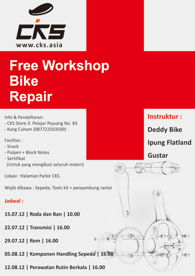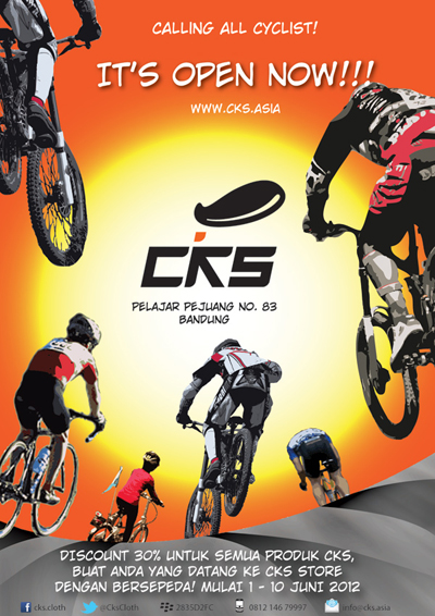 Dapatkan discount 30% untuk semua produk cks, dari tanggal 1 sampai 10 Juni 2012, untuk yang datang ke toko dengan menggunakan sepeda