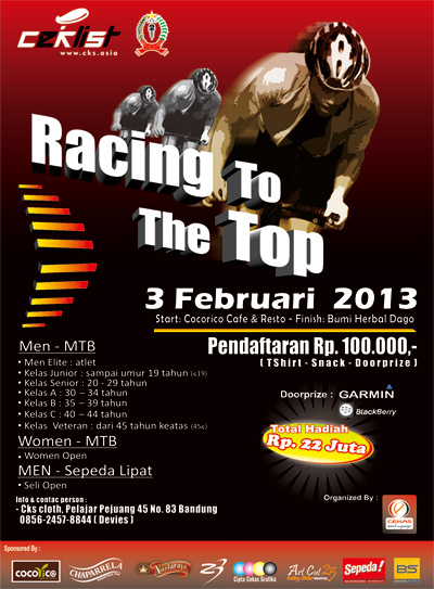 Kejuaraan Tanjakan yang di selenggarakan oleh CKS, pendaftaran bisa ke CKS, Jl. Pelajar Pejuang 45 No. 83 Bandung Bike System, Jl. Ir. H. Djuanda No. 342 A Bandung Deddy Bike, Jl. A. Yani No. 288 Bandung SA Bike, Jl. Cisangkan…